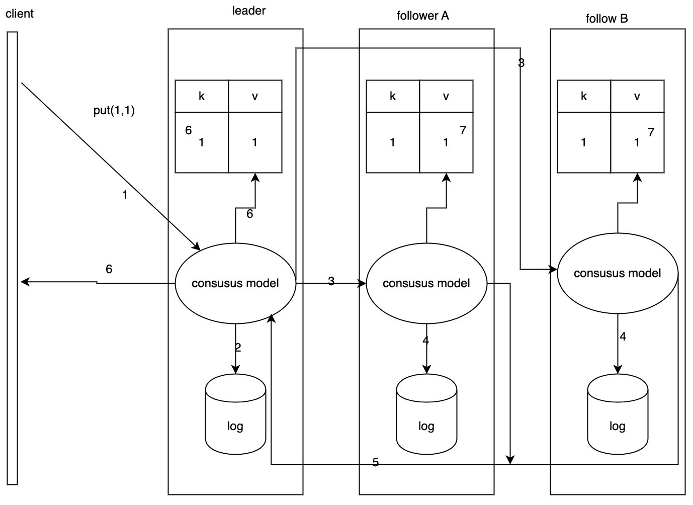 - 当follower通过心跳信息得知entry被leader成功应用,也会在本机应用entry。