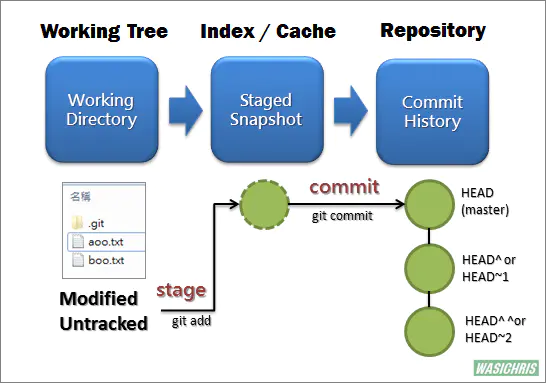 git reset实现回退操作。首先需要明确三个区域:工作区/ 暂存区/ Repository。