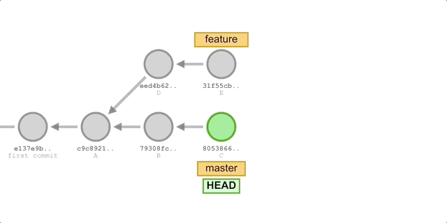 - 在临时分支上应用当前分支的每一次提交,如果出现冲突就会终止
